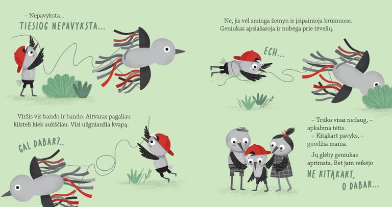 Girios proskynoje nutinka svarbus įvykis – geniukas Viržis pirmą kartą pakyla į orą. O kaip jam pavyko, sužinosit šioje knygoje, kuri skirta ne tik skrajojantiems padebesiais, bet ir tvirtai stovintiems ant žemės.